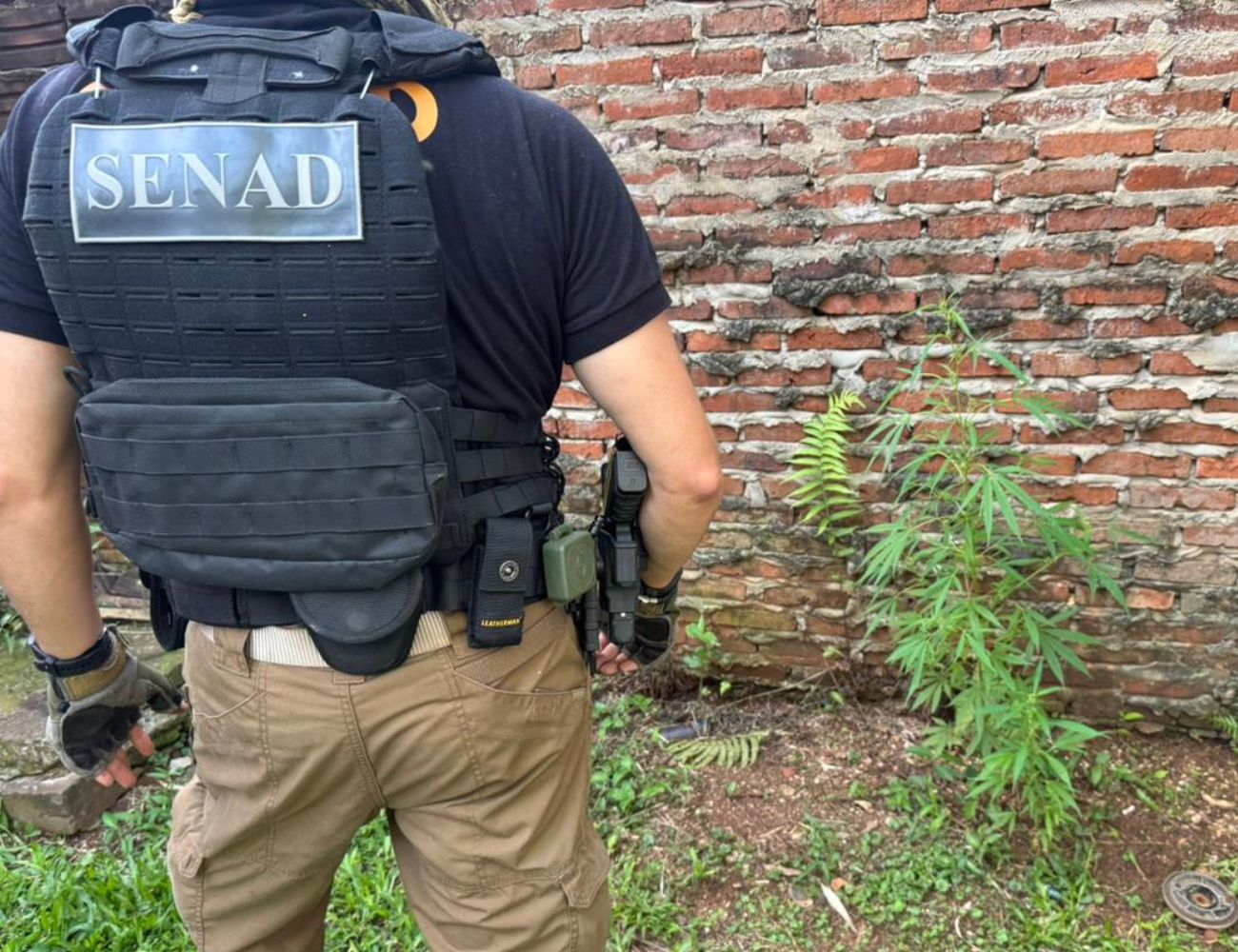 El operativo se realizó en una vivienda deshabitada de Encarnación, donde agentes de la SENAD arrancaron tres plantas de cannabis en fase vegetativa que crecían en el patio. Las fotos oficiales muestran ejemplares pequeños, sin floración y sin valor comercial. No hubo detenidos, no apareció marihuana procesada y no existía ningún elemento que sugiriera tráfico o comercialización. Aun así, la intervención fue presentada como un logro institucional.